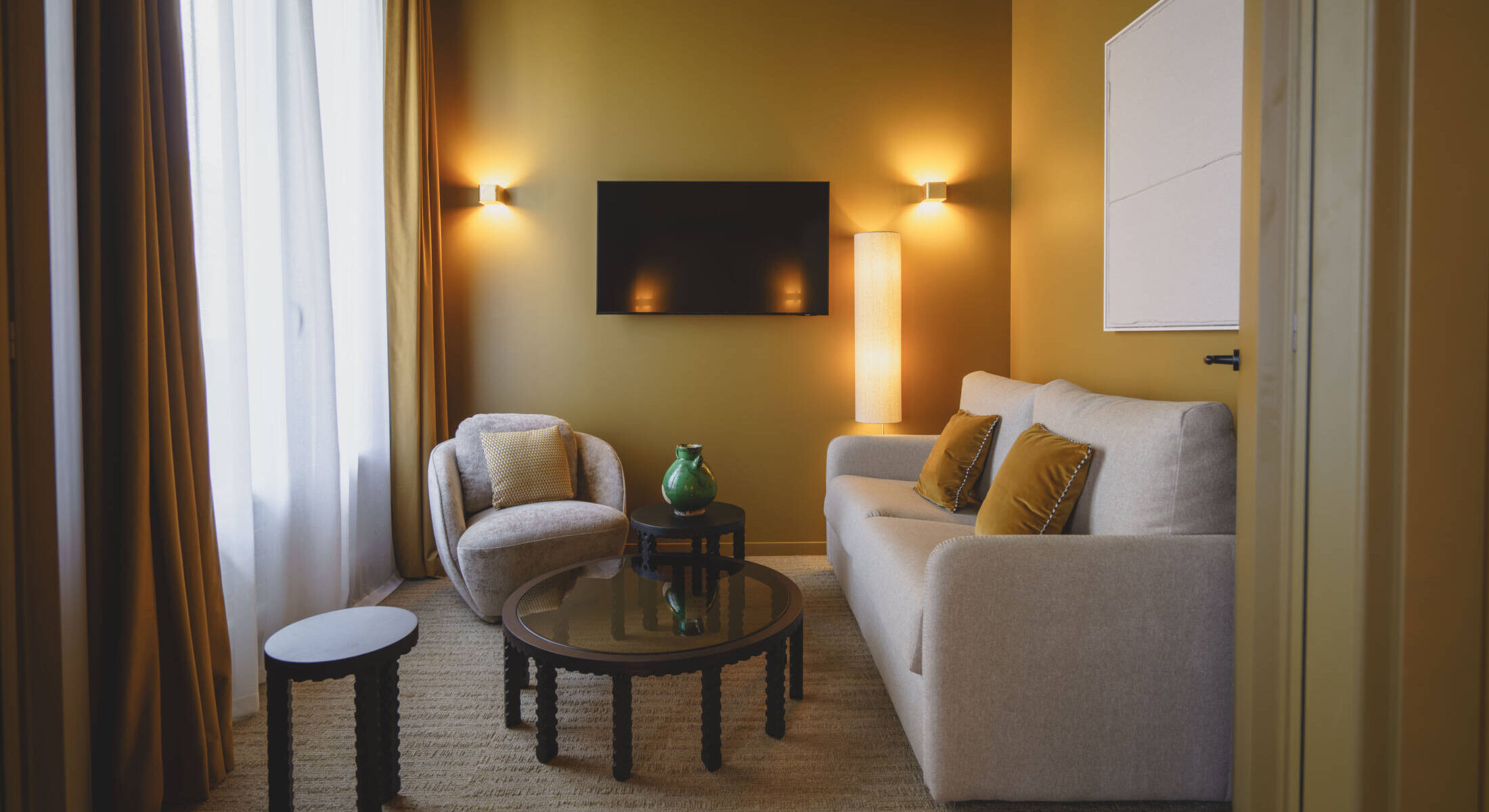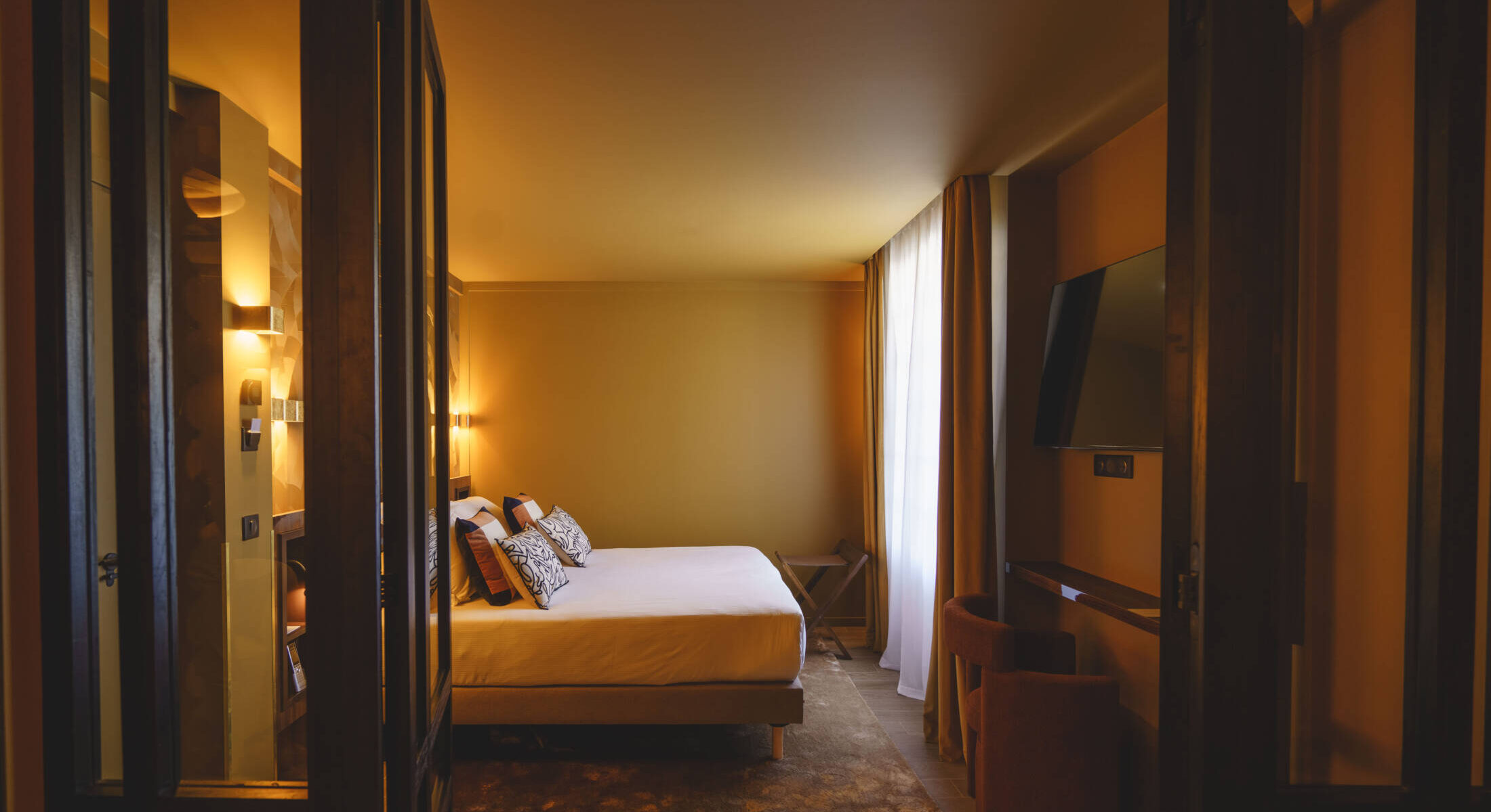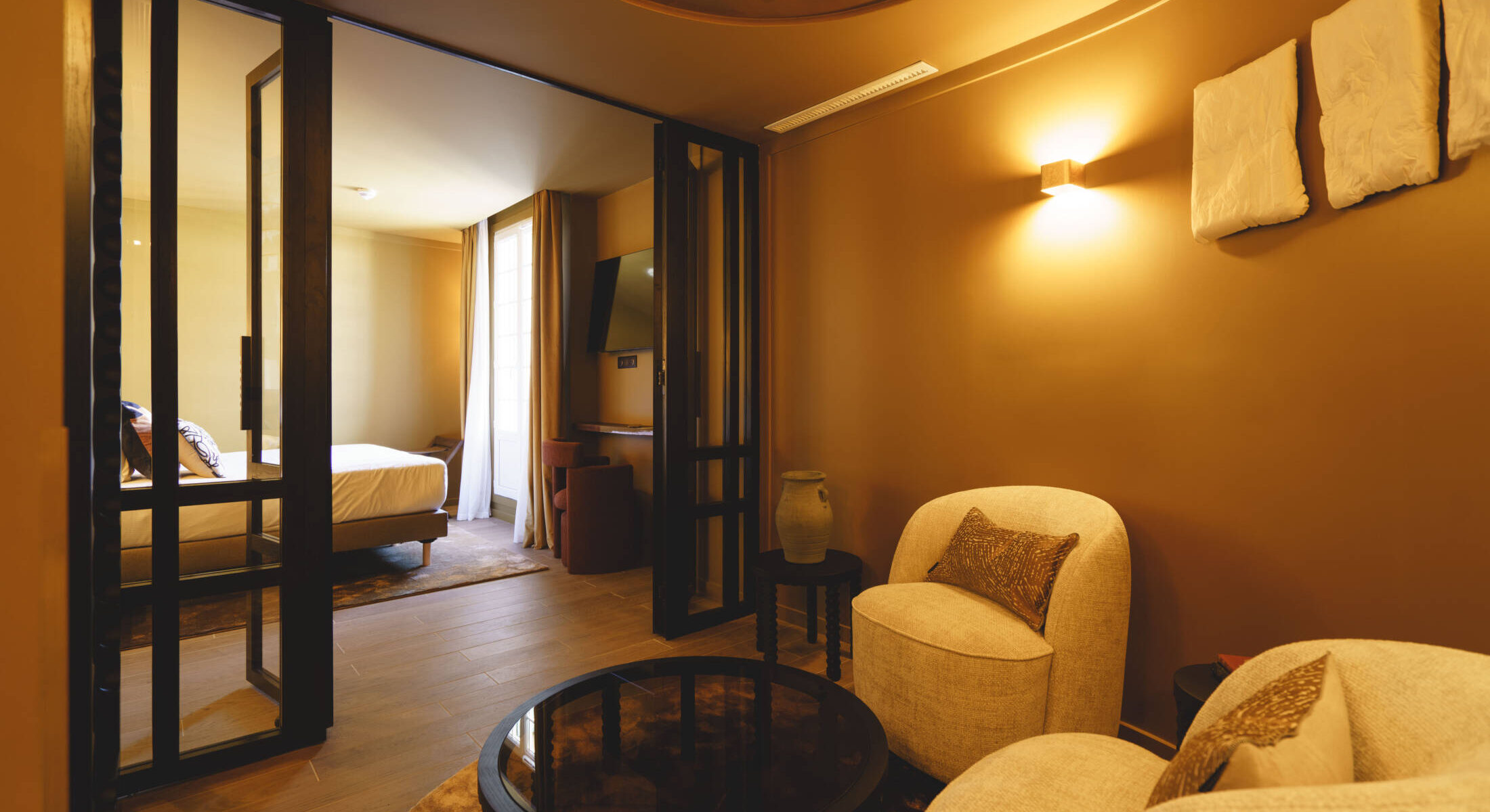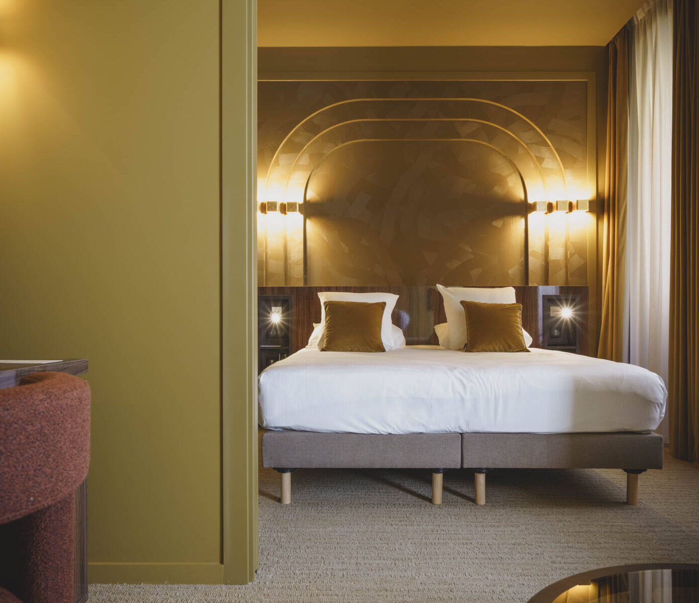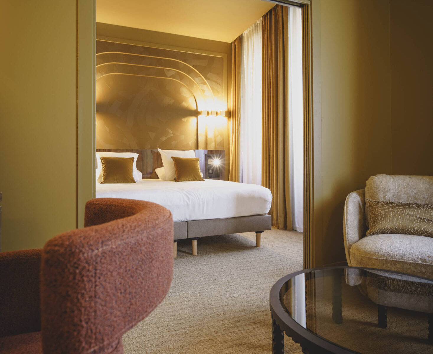 Aménagée avec soin, la Suite Junior est un hébergement de 20 m² qui offre un environnement raffiné et chaleureux. La décoration de style Art déco et Art nouveau ainsi que l’aménagement fonctionnel et élégant, donnent à l’ensemble un charme insolite, emblématique de notre hôtel de luxe.